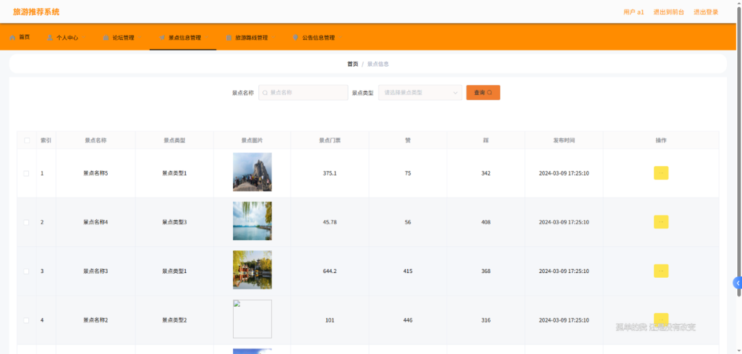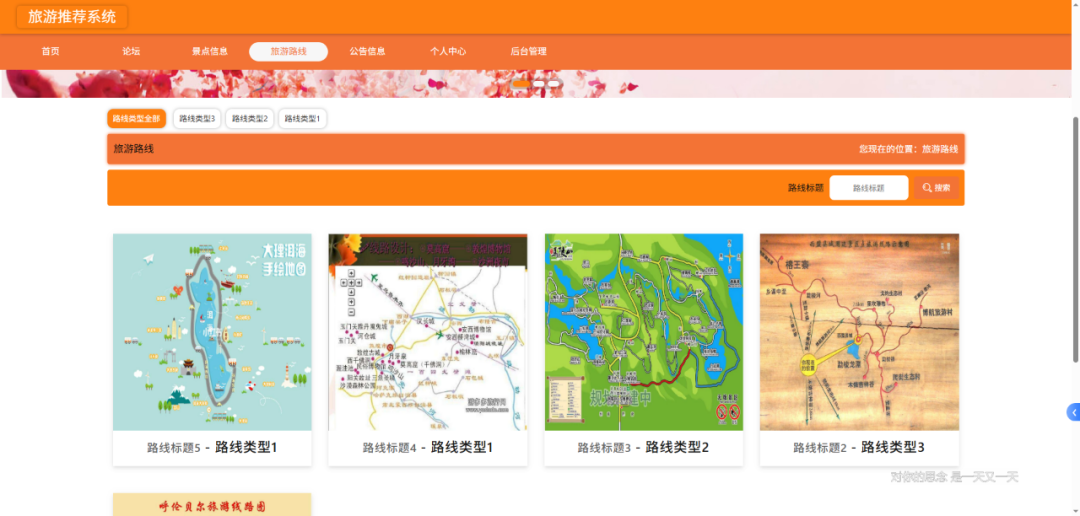 基于Spring Boot的热门旅游推荐系统涵盖丰富功能模块。用户信息管理模块,支持用户信息的新增与修改,方便用户完善个人资料,为个性化推荐提供数据基础。景点信息管理模块,可对景点信息进行添加、删除和修改,便于及时更新景点详情,如景点介绍、开放时间等。路线信息管理模块,能实现路线信息的添加、修改和删除,助力打造多样且精准的旅游路线推荐。公告类型管理和公告信息管理模块,用于对旅游相关公告的类型和内容进行管理,让用户及时获取景区通知、活动等信息。论坛信息管理模块,支持论坛信息的添加、删除和修改,为用户提供交流旅游体验、分享攻略的平台,增强用户互动性。这些功能相互协作,共同为用户打造便捷、智能的旅游推荐与交流环境。