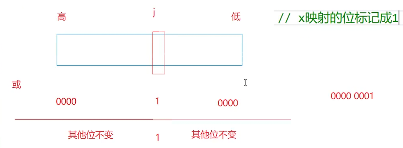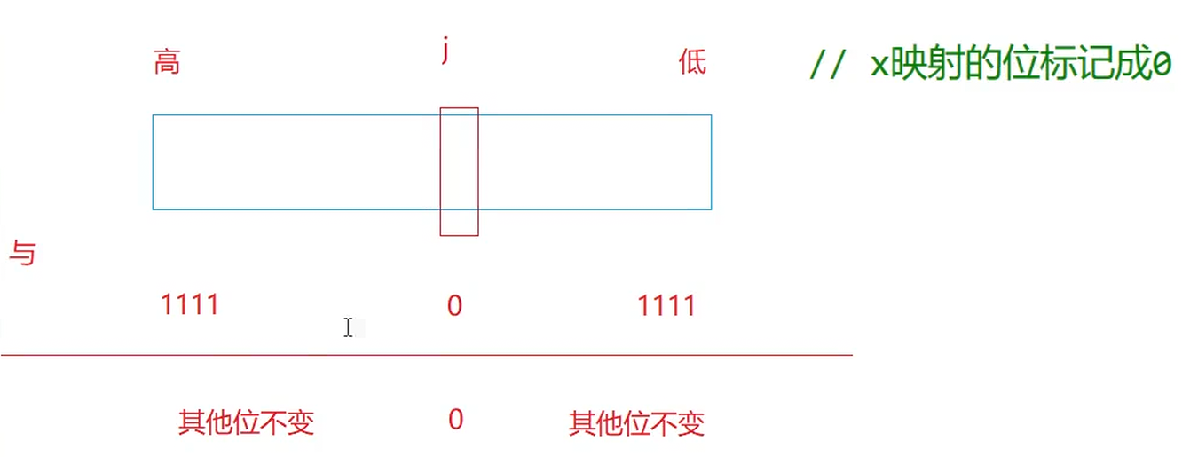 {template<size_t N>class bit_set{public:bit_set(){_bs.resize(N / 32 + 1);}//x映射的位标记成1void set(size_t x){size_t i = x / 32;size_t j = x % 32;_bs[i] |= (1 << j);}//x映射的位标记成0void reset(size_t x){size_t i = x / 32;size_t j = x % 32;_bs[i] &= (~(1 << j));}//x映射的位是1返回真//x映射的位是0返回假bool test(size_t x){size_t i = x / 32;size_t j = x % 32;return _bs[i] & (1 << j);}private:std::vector<size_t> _bs;};