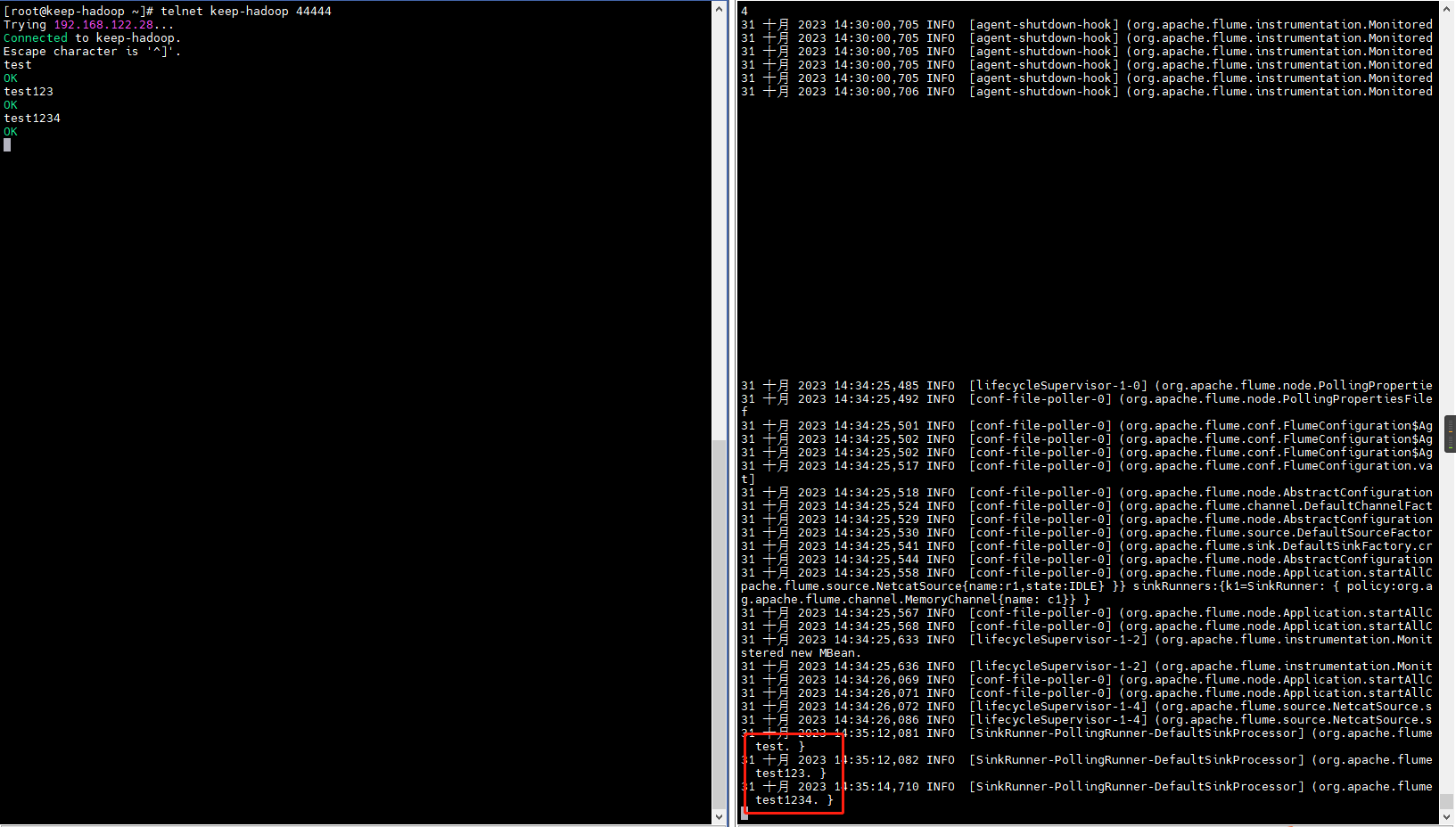 [root@keep-hadoop ~]# telnet keep-hadoop 44444