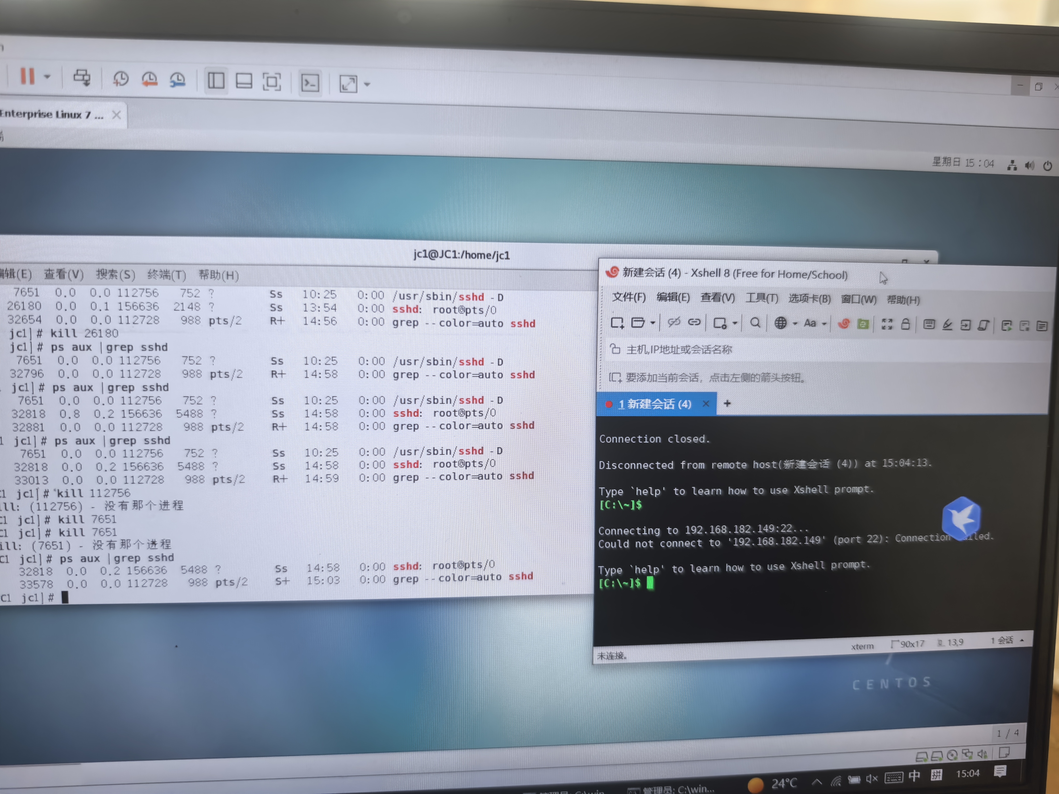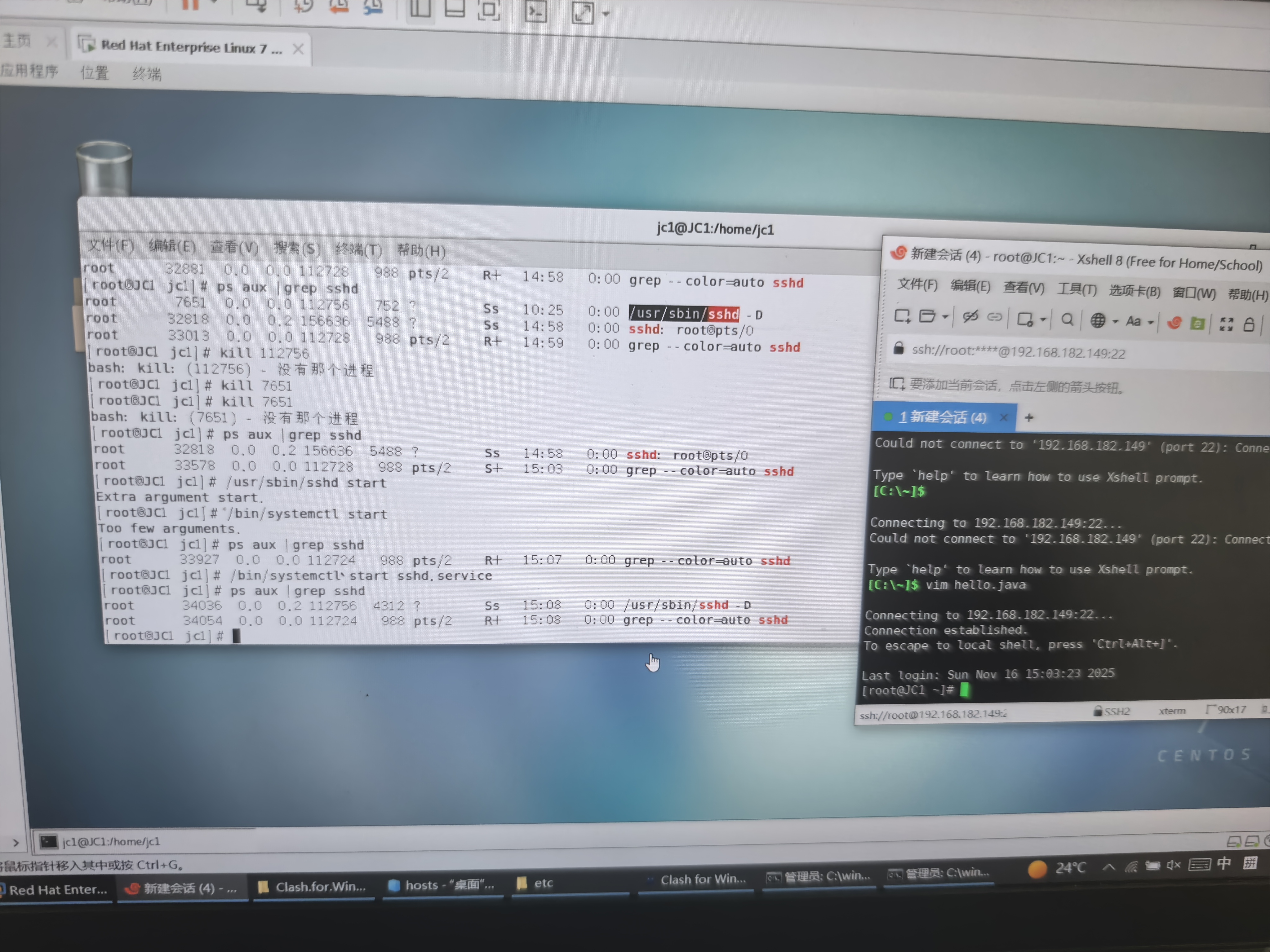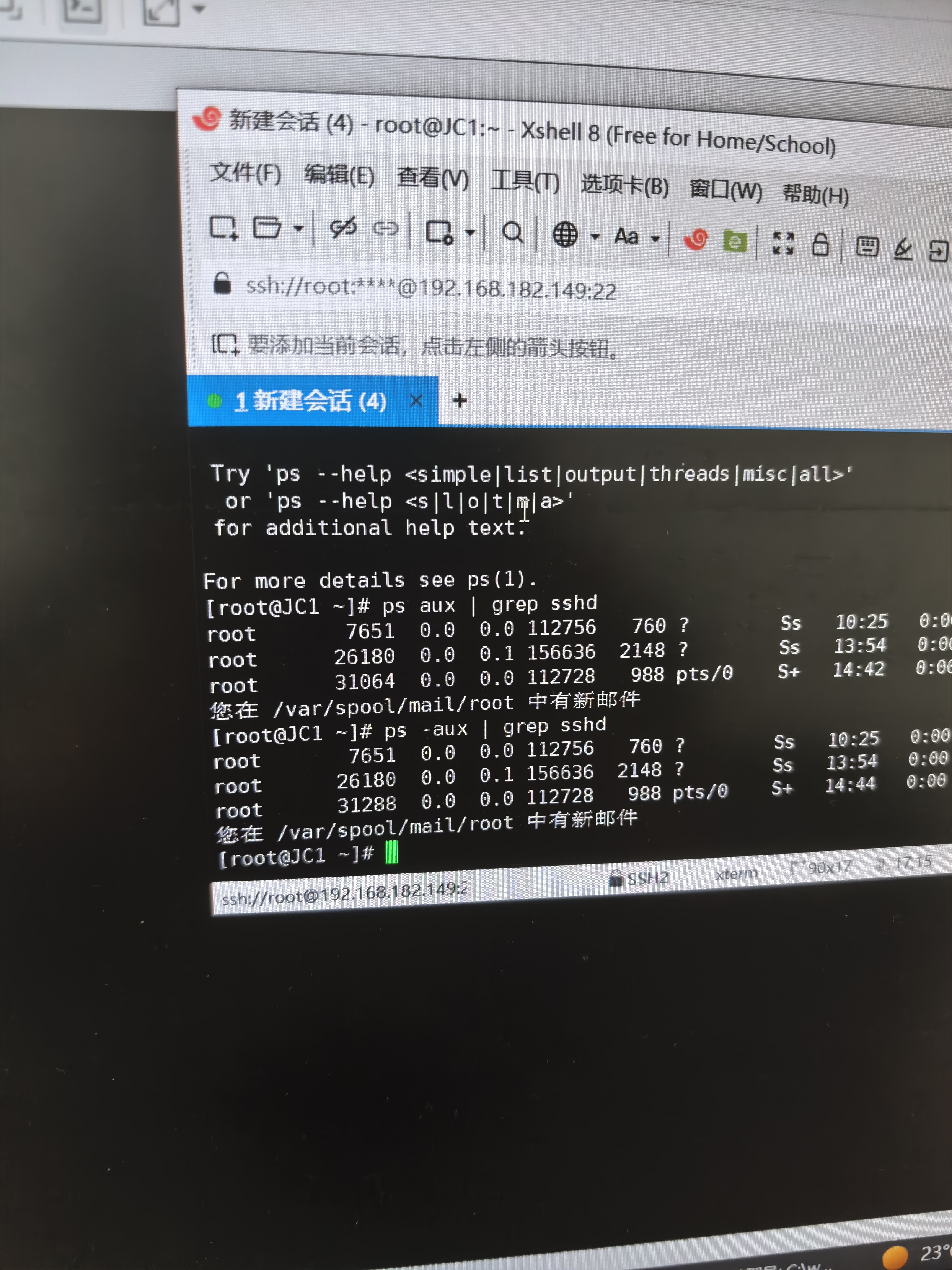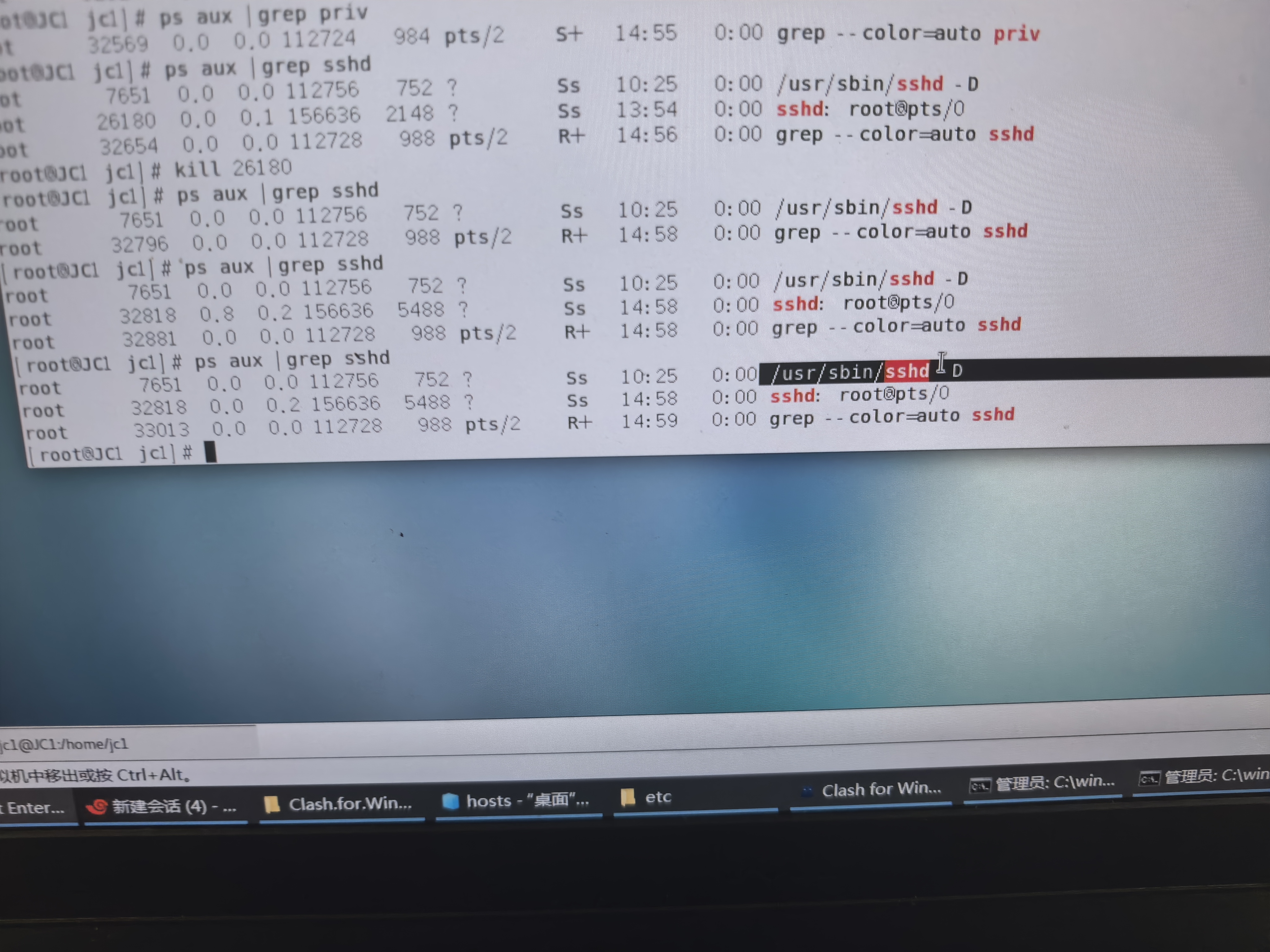 - 去掉 grep sshd ,直接执行 ps -aux (显示所有进程,包含你自己的终端进程);