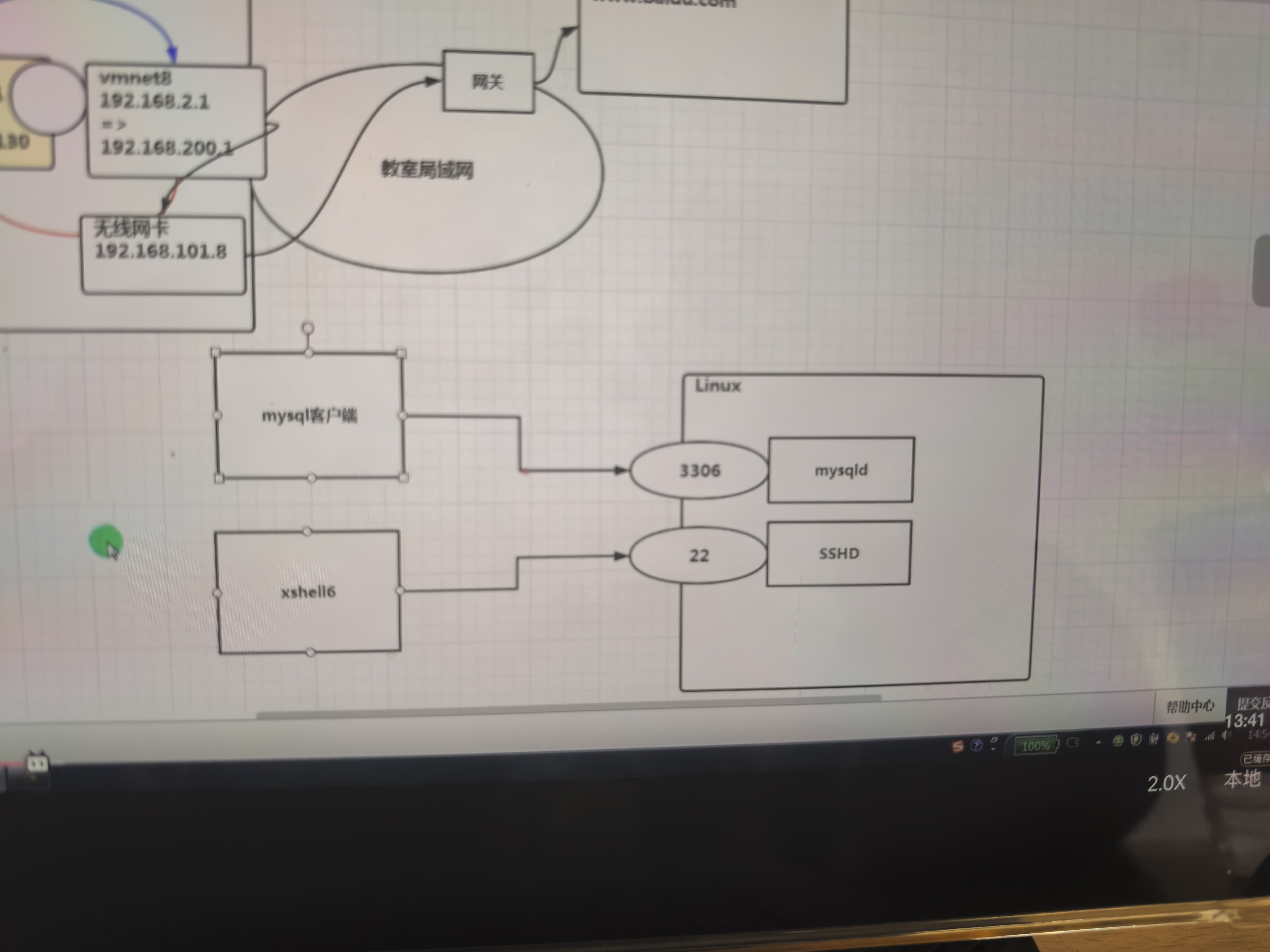 它是VMware的“NAT模式虚拟网络”对应的虚拟网卡,作用是为Linux虚拟机(192.168.2.131)提供一个独立的虚拟子网(192.168.2.x),让虚拟机可以通过宿主机的无线网卡(192.168.101.8)接入教室局域网、进而访问互联网——本质是虚拟的网络连接组件,负责网络通路的建立。