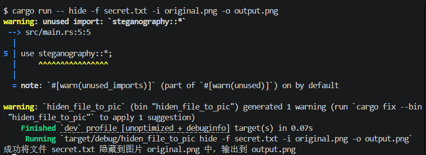 通过这个项目,我深入理解了隐写术的原理和实现方式,也体验了 Rust 在系统编程方面的优势。从算法设计到界面实现,每一个环节都充满了挑战和乐趣。