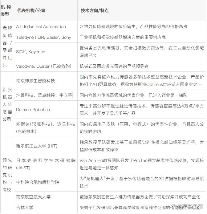 人形机器人的非接触式传感技术生态包含老牌供应商、新兴科技公司和前沿研究机构。