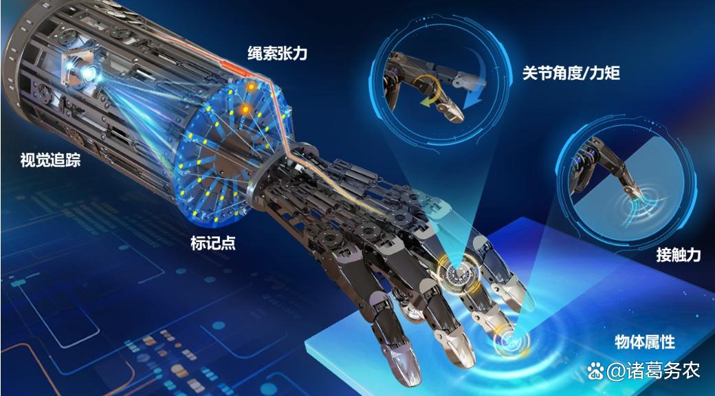 这是当前的研究前沿。例如,基于视觉的触觉传感提供了新的思路。哈工大魏承教授团队研发的多模态绳驱灵巧手,仅利用一个单目相机就能实现整手的力-位-触多模态感知,无需安装传统的位置或力传感器,既能感知指尖的接触力和物体的柔软度,也能重建物体的轮廓形状。