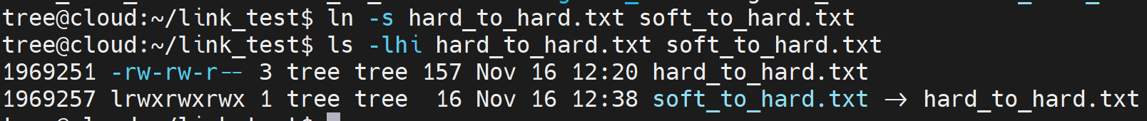 ln -s hard_to_hard.txt soft_to_hard.txtls -lhi hard_to_hard.txt soft_to_hard.txt
