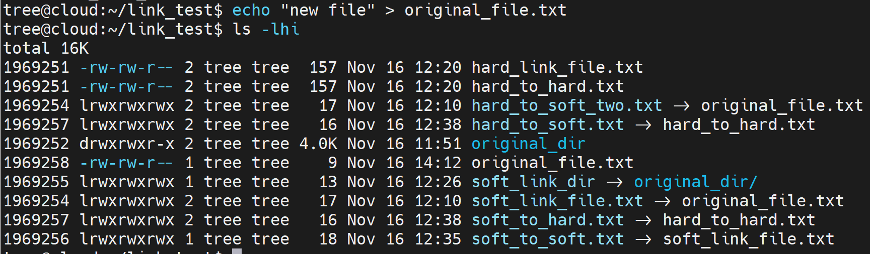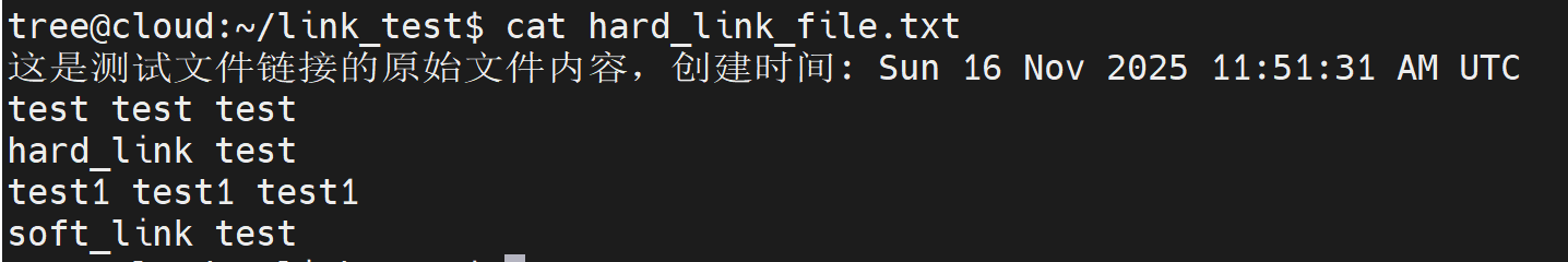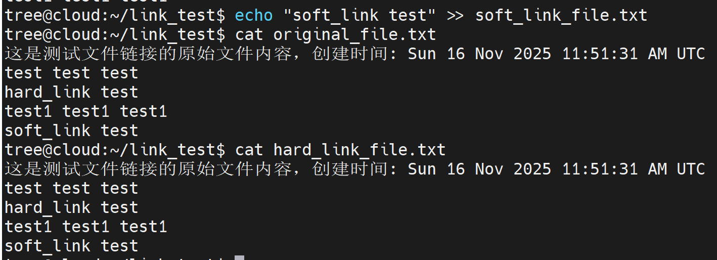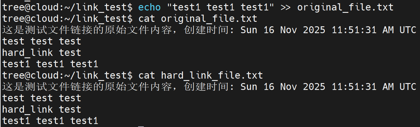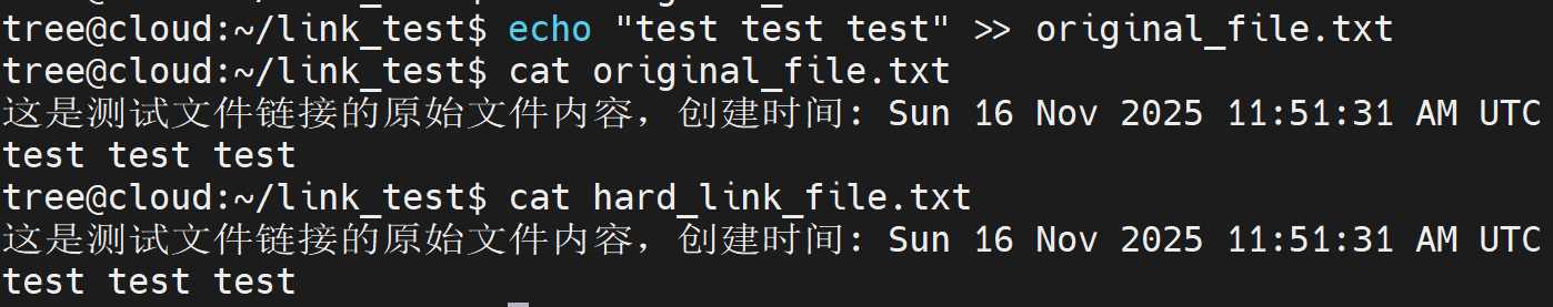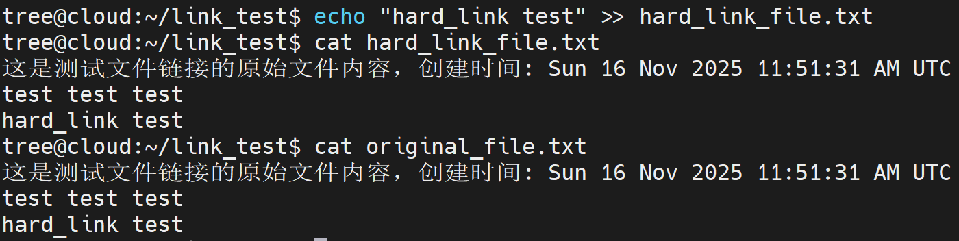 echo "hard_link test" >> hard_link_file.txtcat original_file.txt