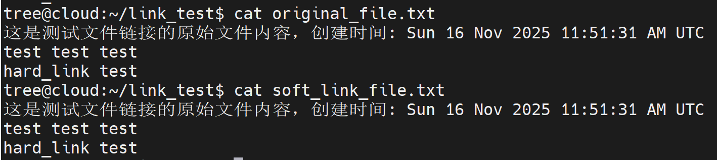 cd link_testecho "这是测试文件链接的原始文件内容,创建时间: $(date)" > original_file.txtmkdir original_dir