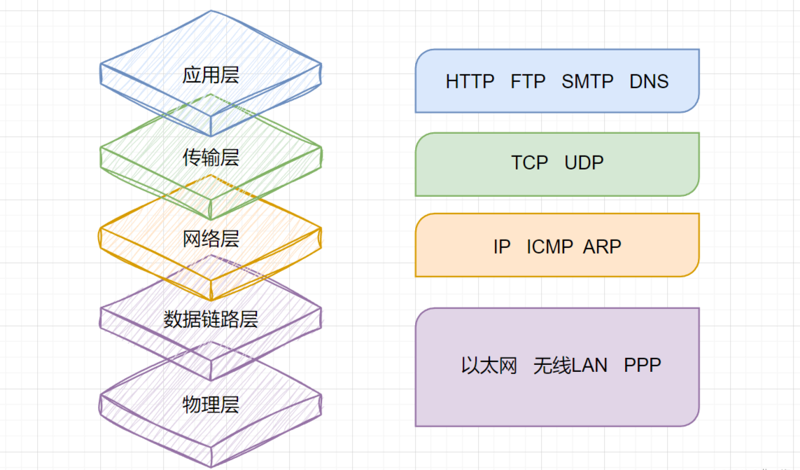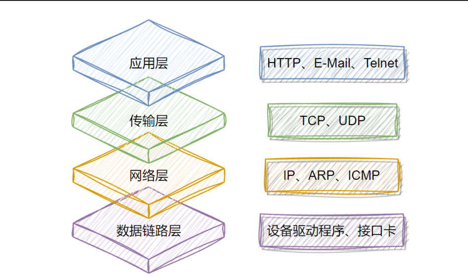 此时网络的 层状结构 呼之欲出,不同分层中包含了各种协议,负责解决不同的问题