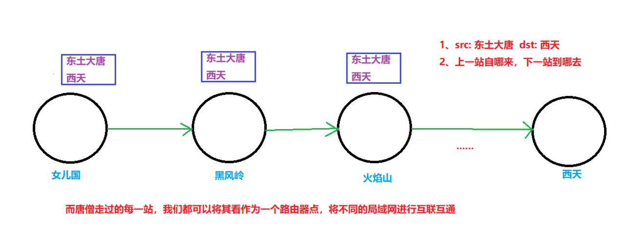 其中 目的IP地址给我们提供路径规划的依据,唐僧为什么要去女儿国?因为唐僧要去西天,唐僧为什么要去黑风岭?因为唐僧要去西天。