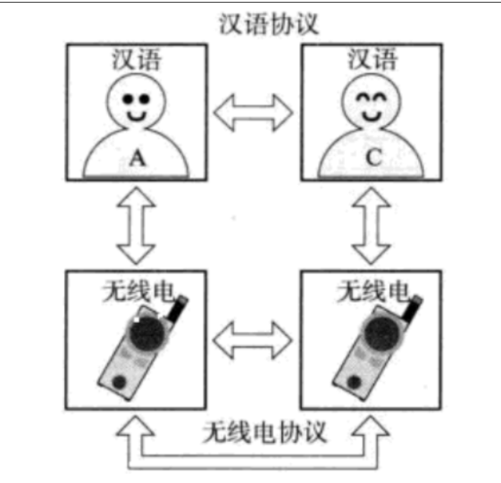 A、B同处 语言层,任务是 进行通话,而通话的具体实现属于 通信设备层,用于 实现通话;语言层 依赖 通信设备层 的功能,但并不关心它的具体实现,因为没必要