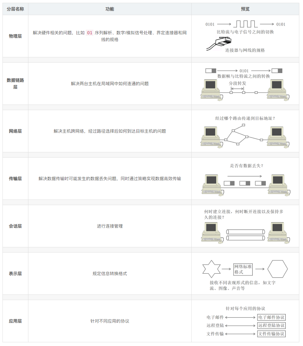 这些问题之间是存在先后关系的,比如只有先把信息组织好了,才需要考虑数据传输过程中的丢失问题,丢失问题得到保障后,就要考虑把数据发送给谁、如何发送,最终通过硬件完成发送