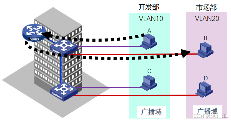 不同VLAN的成员不能直接进行二层通信: