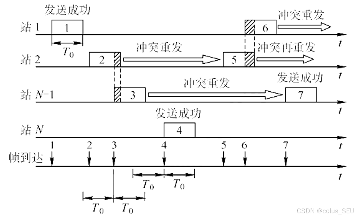 其中广播链路有一个核心问题:多路访问(Multiple Access Problem),即如果两个或以上节点同时传输,它们的信号会在信道上叠加(干扰),导致所有发送方的数据都无法被正确接收,这就是冲突(Collision)。