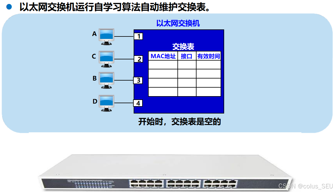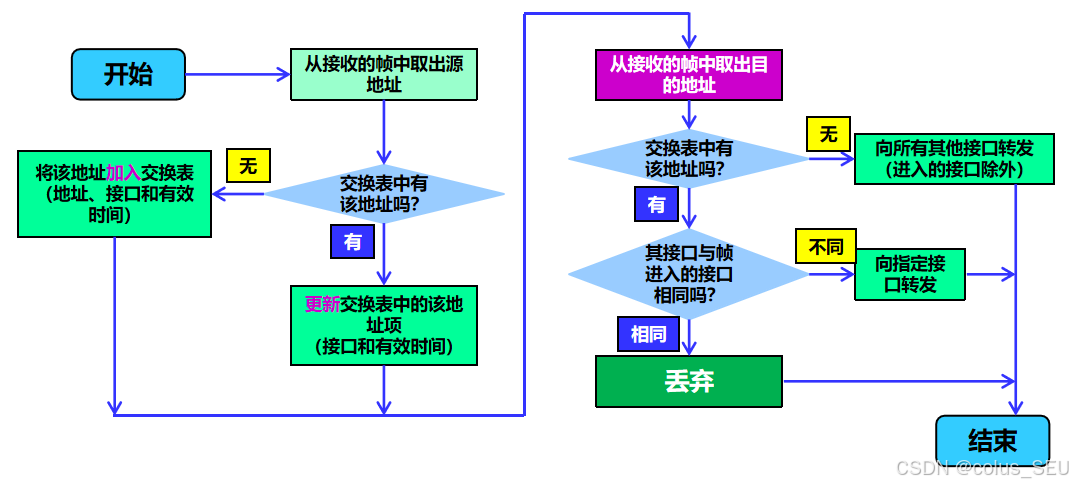 switches: 使用洪泛、自学习、根据MAC地址进行转发