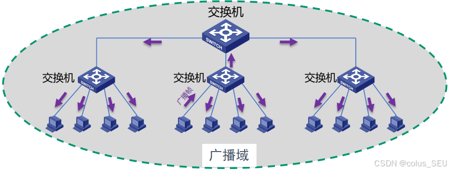 如下图,某个站点发送了一个广播帧,能够收到该广播帧的设备同处于一个广播域: