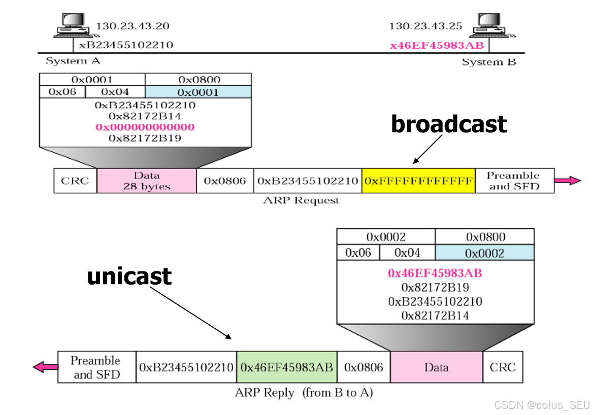 成帧(Framing):将网络层的数据报封装成帧,添加帧头和帧尾。帧头通常包含MAC地址。