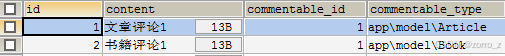 从存储的数据中可以看到,commentable_type 字段存储的是所属的模型,内容为完整的命名空间模型名。
