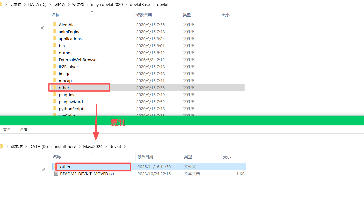 安装包解压后复制这个other文件夹到对应maya的安装位置