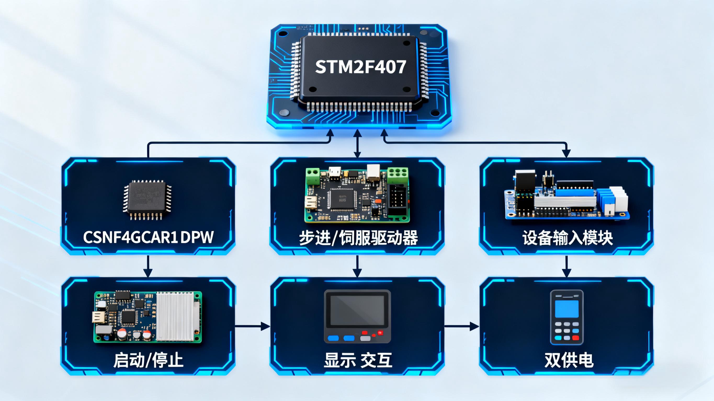 - 将 STM32F407 的各个功能引脚合理分配,连接到运动控制模块、存储芯片、数据输入模块、用户交互界面等各个部分。