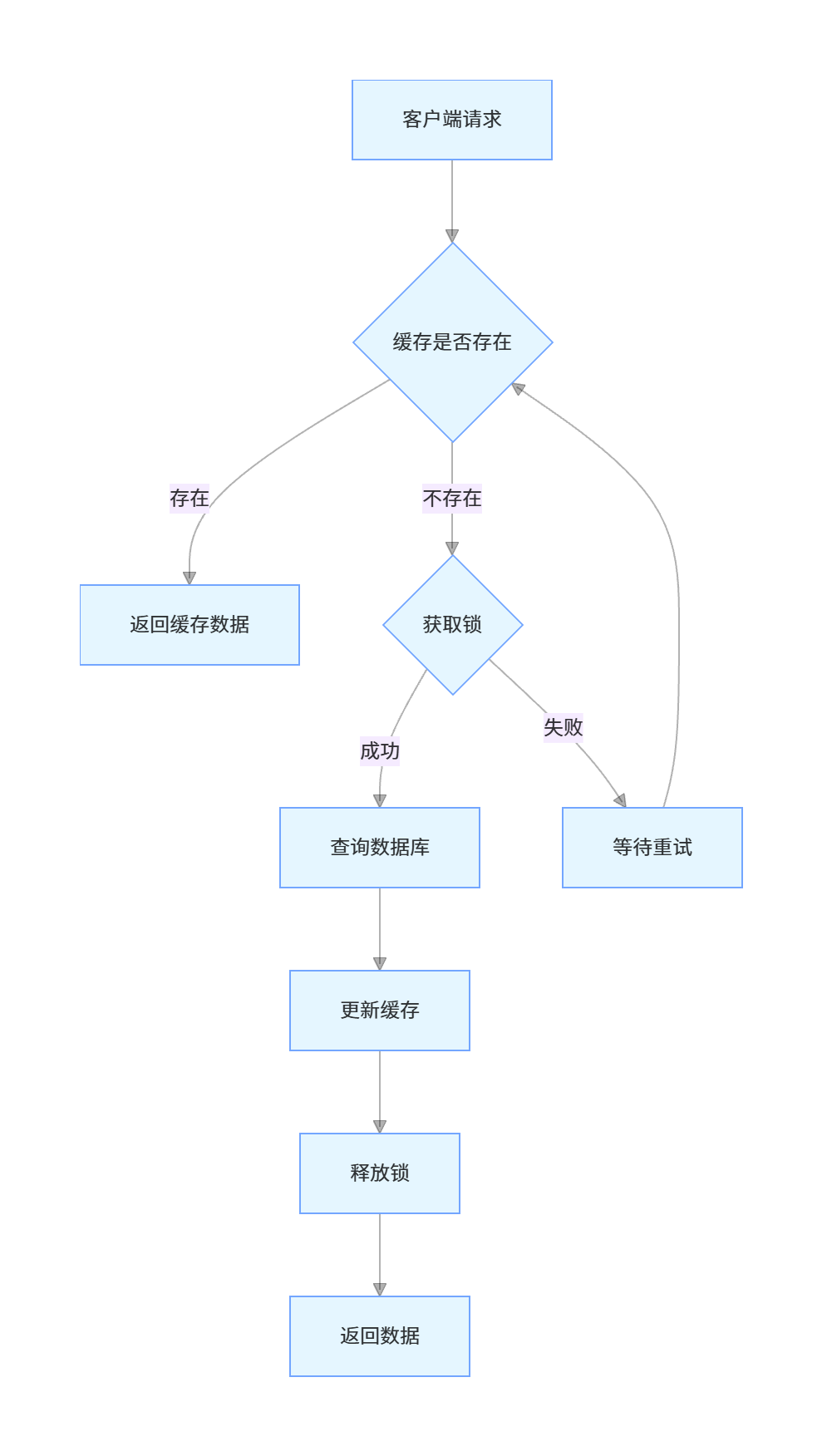 - 互斥锁:获取锁的线程更新缓存,其他线程等待