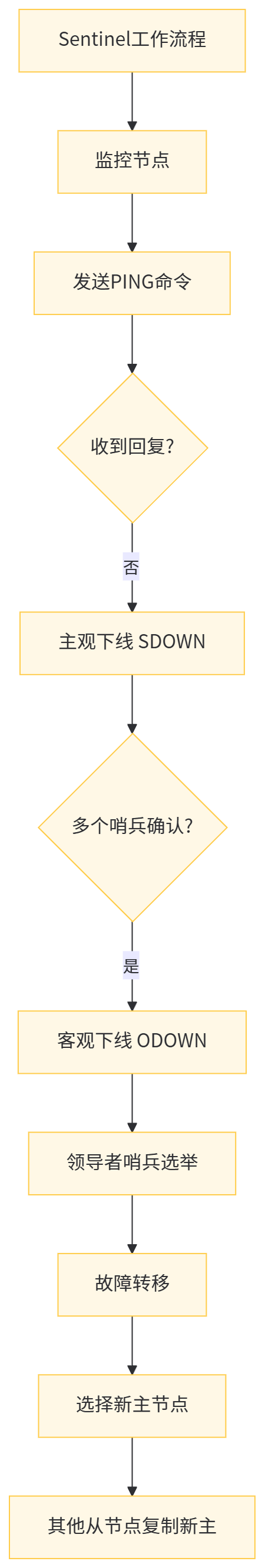- 合理配置哨兵:监控主从节点,实现自动故障转移