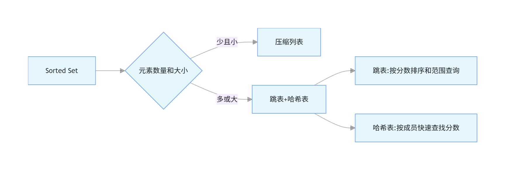 - Sorted Set:适合实现排行榜、延迟队列、范围查询等
