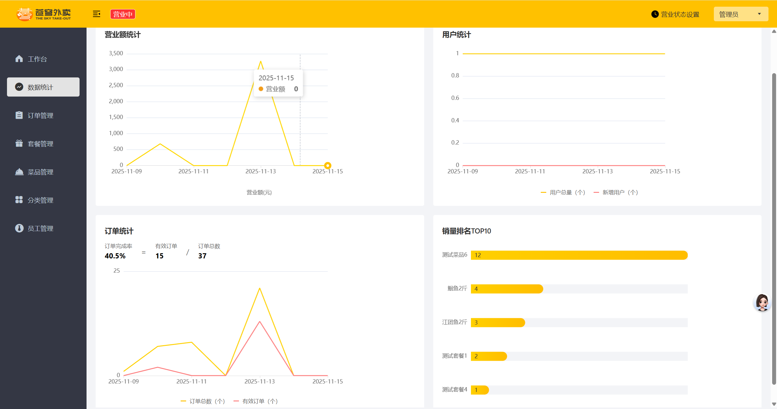 数据统计我们分为四个表来统计,前面三个表都是以日期作为横坐标,具体值作为纵坐标,所以具体步骤非常相似,我们这里选择订单统计来作为示例详细讲解,因为他最复杂。