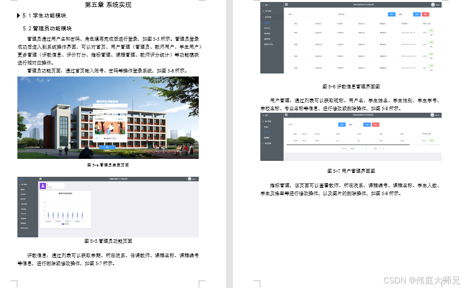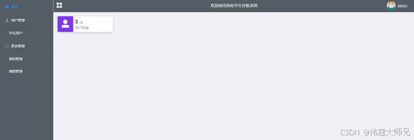 老师进入到系统界面,可以对首页、学生用户、指标管理、课程管理等功能模块操作,如图5-10所示。