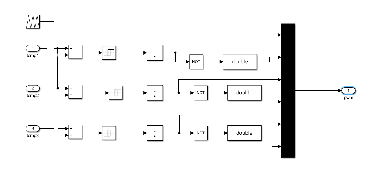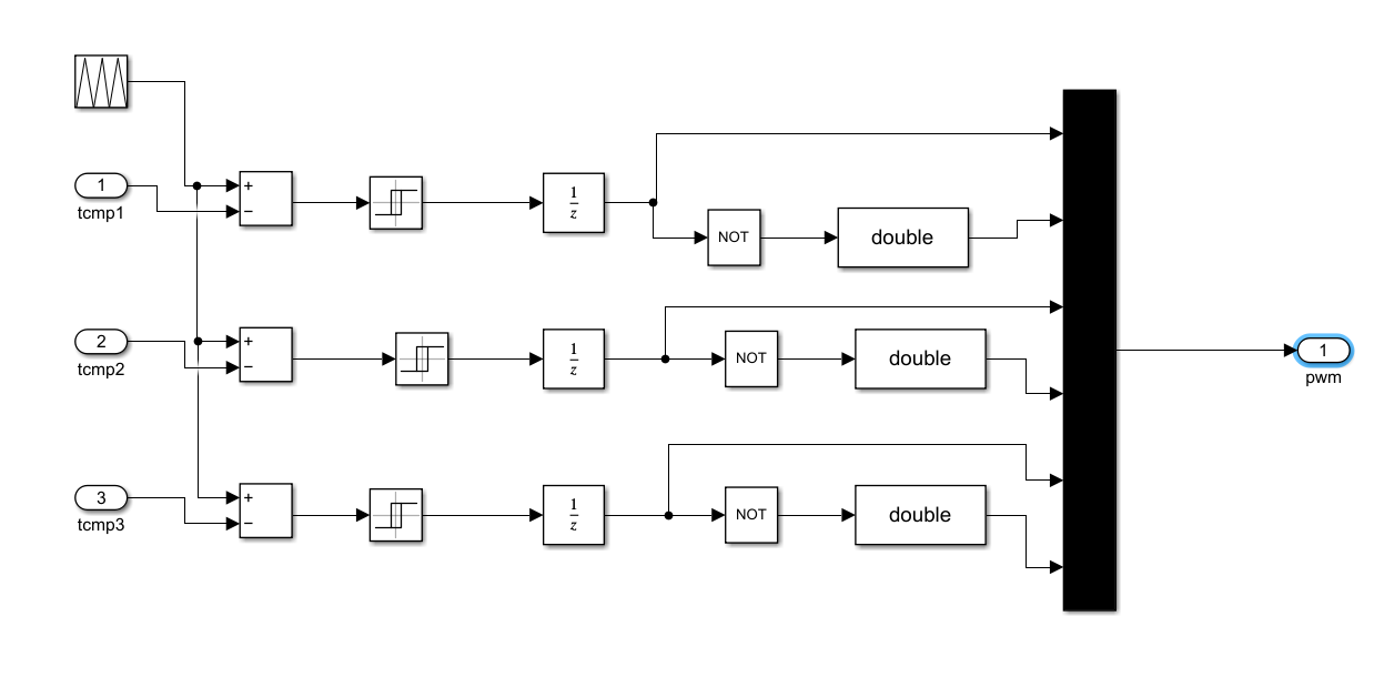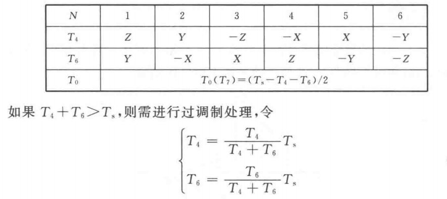 ⚠️ 注意:T1 和 T2 是从前面的“扇区选择 + 时间计算”模块输出的原始值,可能大于 TS,这就是“过调制”的表现。