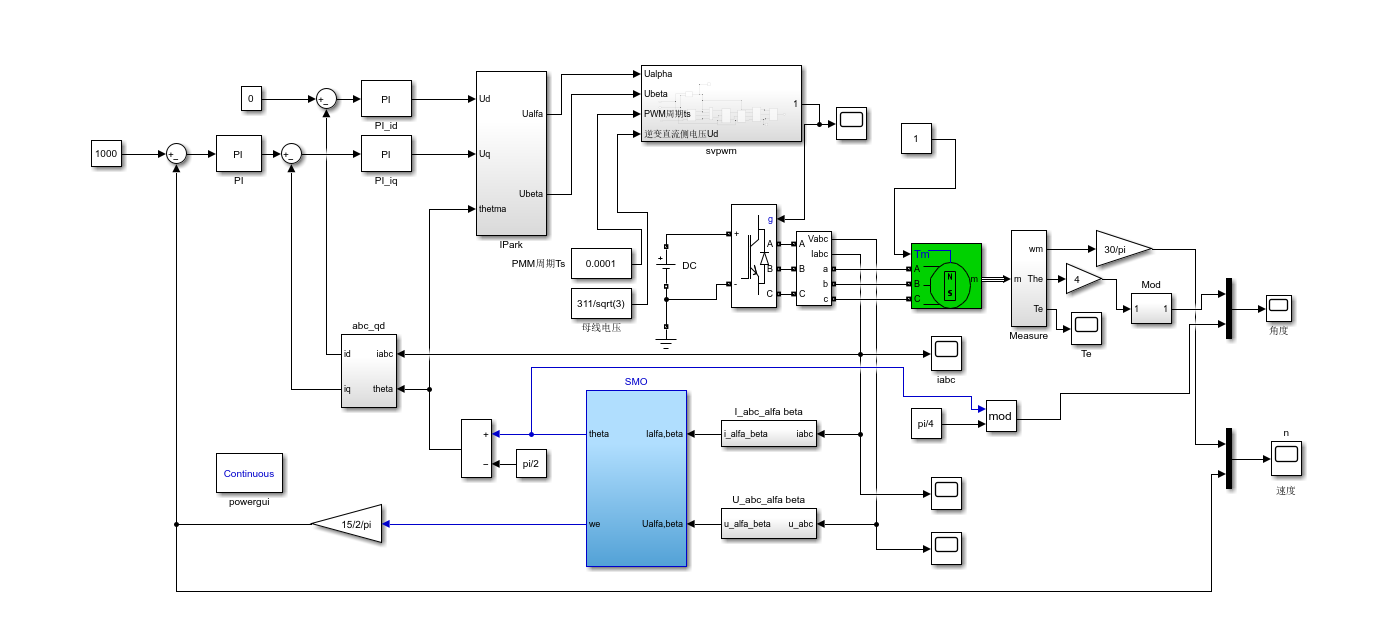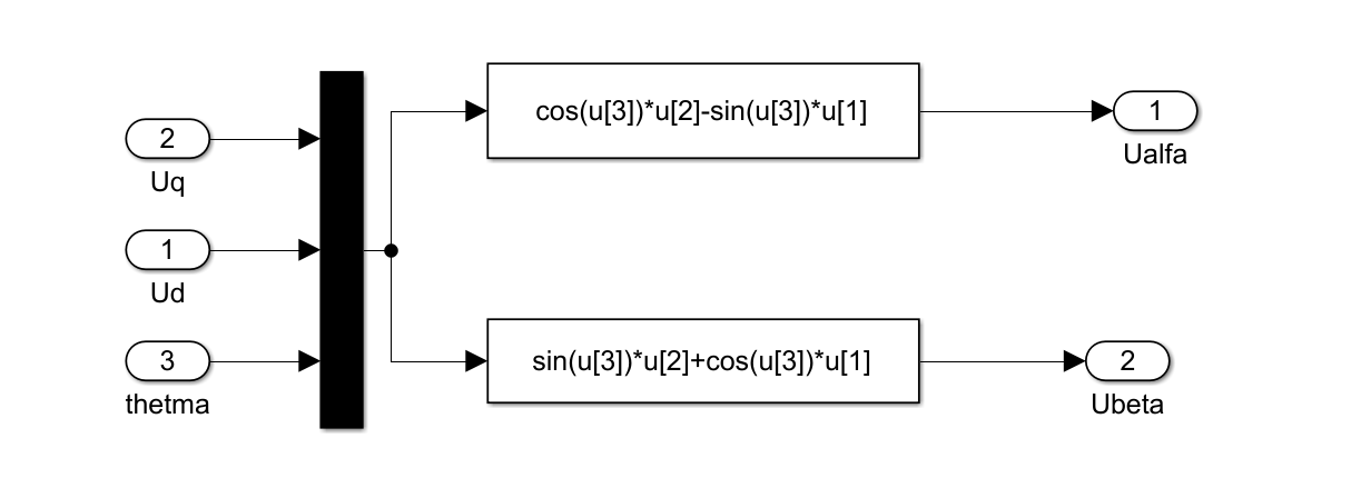Ud:d 轴电压(直轴电压)Uq:q 轴电压(交轴电压)thetma:转子电角度(即旋转坐标系相对于静止坐标系的夹角)