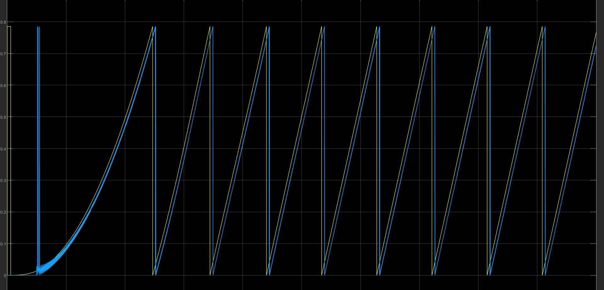 下面是速度的仿真结果。可以看到速度还是跟随的很准的。
