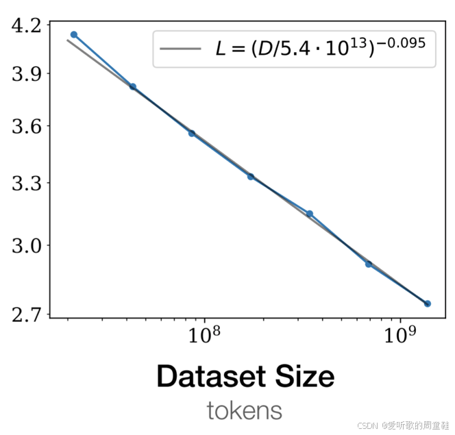 OK,我们首先观察到的实证现象是:当我们以数据集规模为横轴、测试损失为纵轴,在双对数坐标系中,模型性能呈现完美的线性关系