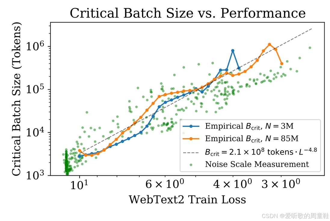 OpenAI 关于临界 batch size 的研究论文对此进行了深入的理论分析,但同样可以通过实证研究来验证这一现象,这种现象同样属于缩放定律的研究范畴,我们可以精确测算出模型性能增速开始放缓的临界点,通过实证研究可以测算出临界 batch size 的最优平衡点,同时还能训练出规模更大、性能更优的模型