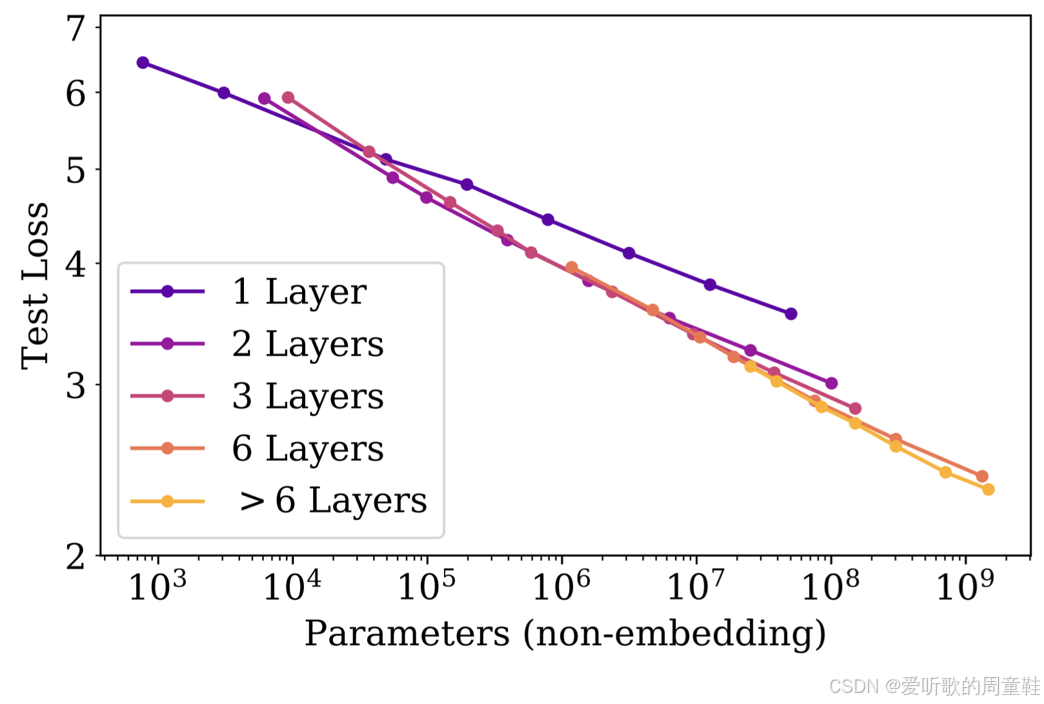 最初我们也提出过类似问题:深度与宽度之间究竟该保持怎样的比例关系?这正是我们讨论过的超参数议题之一,而我们在 Kaplan 的研究中,也看到了类似的分析框架,只不过是以缩放定律的形式呈现