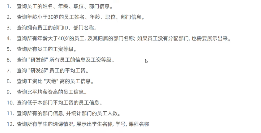 说明:本文章代码演示和练习使用到的数据表在本文章最后