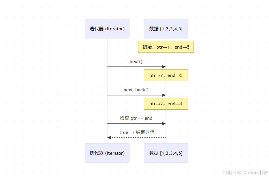 }思路:用两个指针标记范围,每次 next() 就移动 ptr,每次 next_back() 就移动 end。