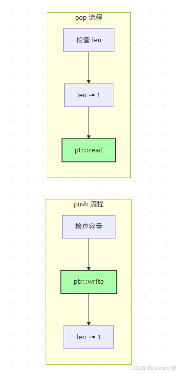 push:ptr::write+len++pop:len--+ptr::read