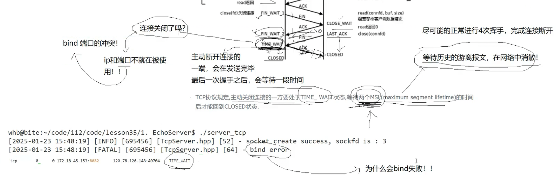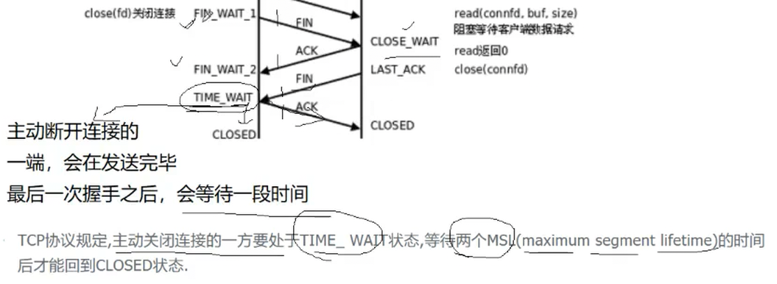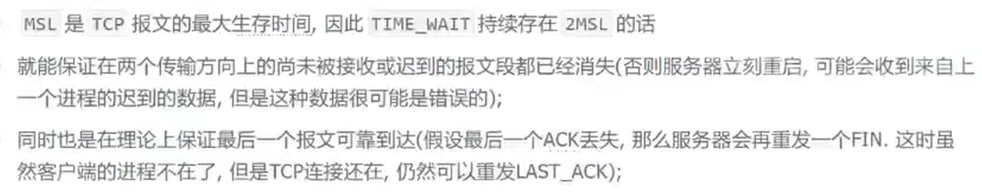 等待2倍的MSL,就是等待历史的游离报文,在网络中消散!(2 * MSL是建议值,大概是消息的来回的时间)