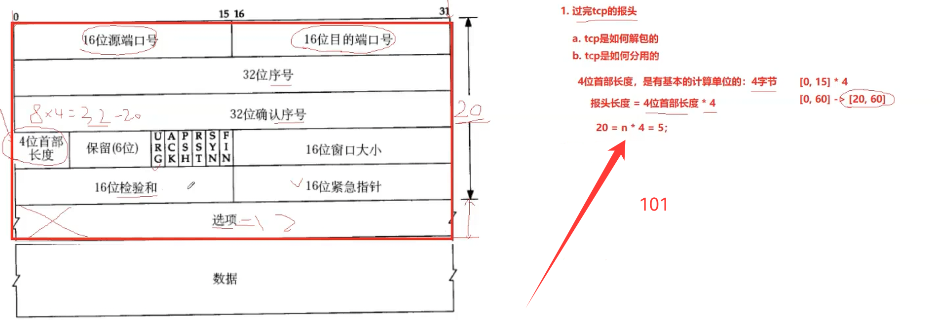 TCP解包:提取4位首部长度,读取该信息,进行解包(拿到对应的数据)