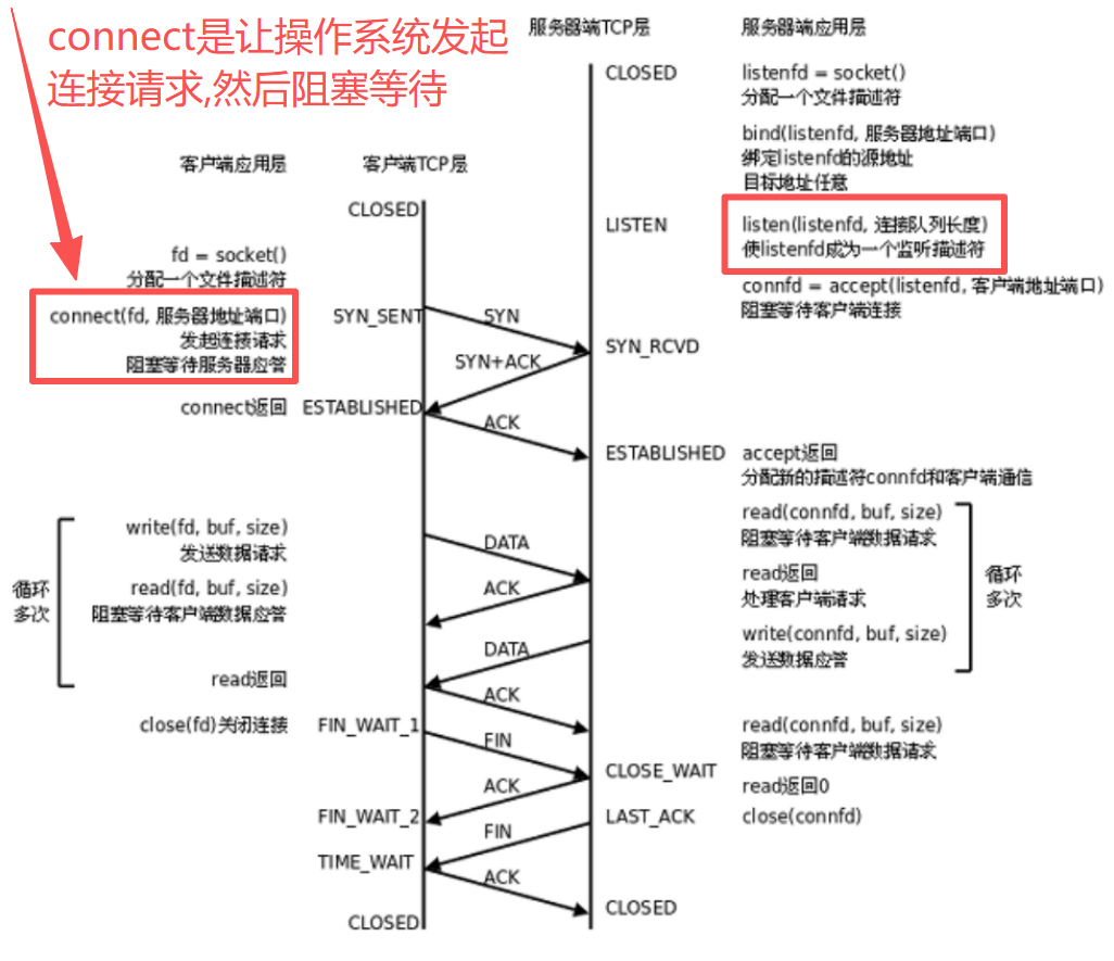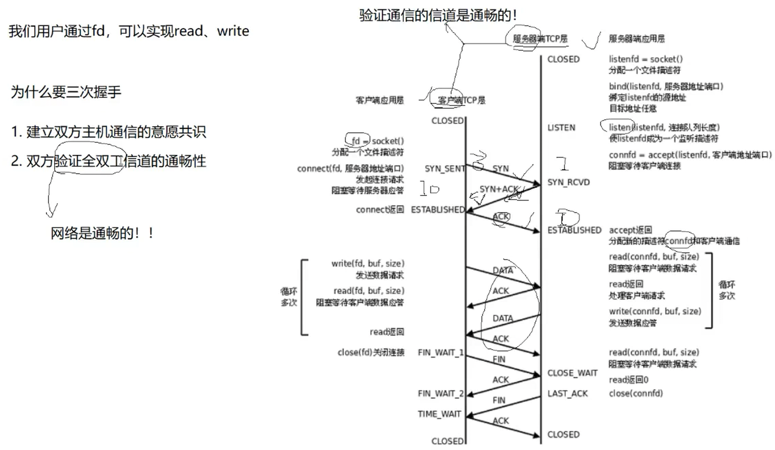 三次握手是系统自动完成的和我们用户没关系(我们用户只要调用对应的接口,让内核进行操作即可)