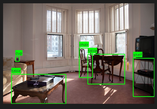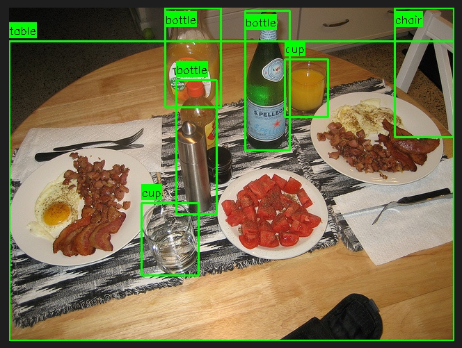 - 支持指定任意类别的物体(table、cup、bottle 等),输出类别、边界框、颜色、形状、外观 5 类信息。