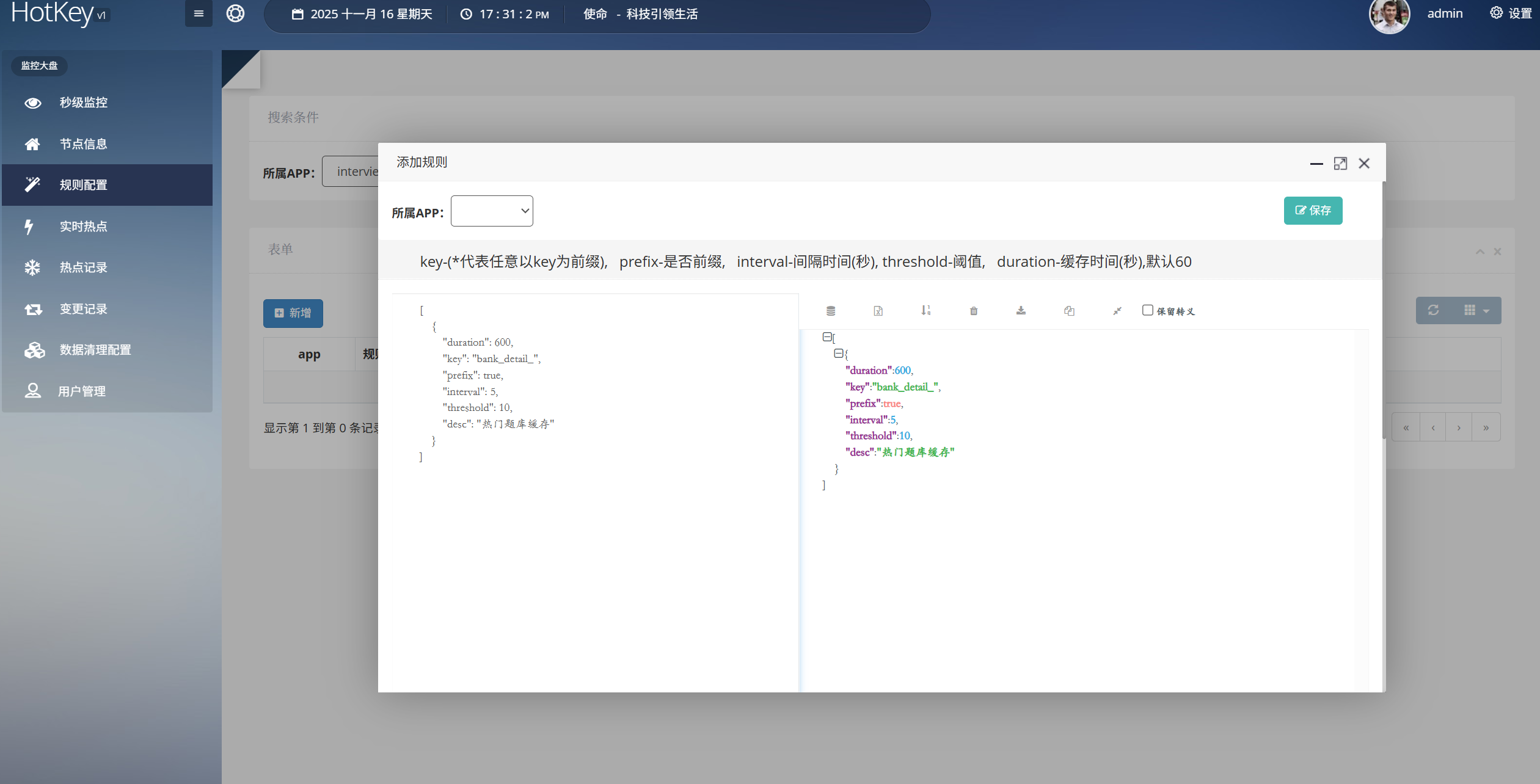 随后,在规则配置中,选择对应的 APP,新增对应的热点探测规则: