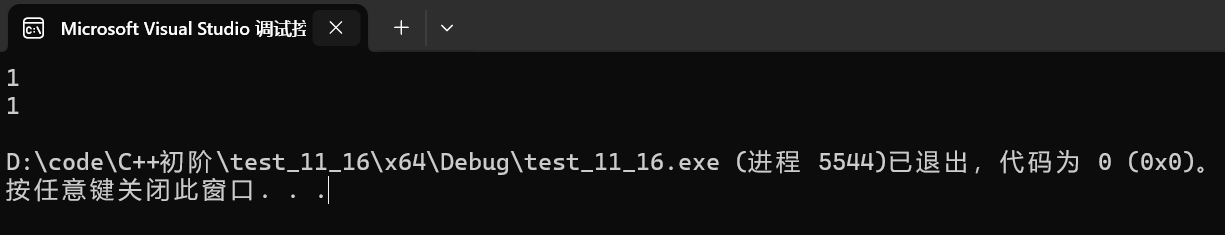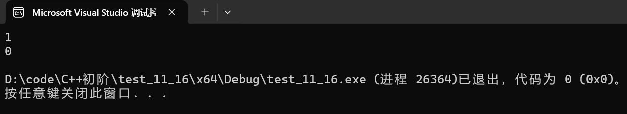 {//对应隐式类型转换——数据的解释意义没有改变double d = 3.14;int a = static_cast<int>(d);cout << a << endl;int&& ref = static_cast<int&&>(a);//对应强制类型转换——数据的解释意义已经发生改变int* p1 = reinterpret_cast<int*>(a);//对应强制类型转换中有风险地去掉const属性//所以要注意加volatilevolatile const int b = 0;int* p2 = const_cast<int*>(&b);*p2 = 1;cout << b << endl;cout << *p2 << endl;return 0;