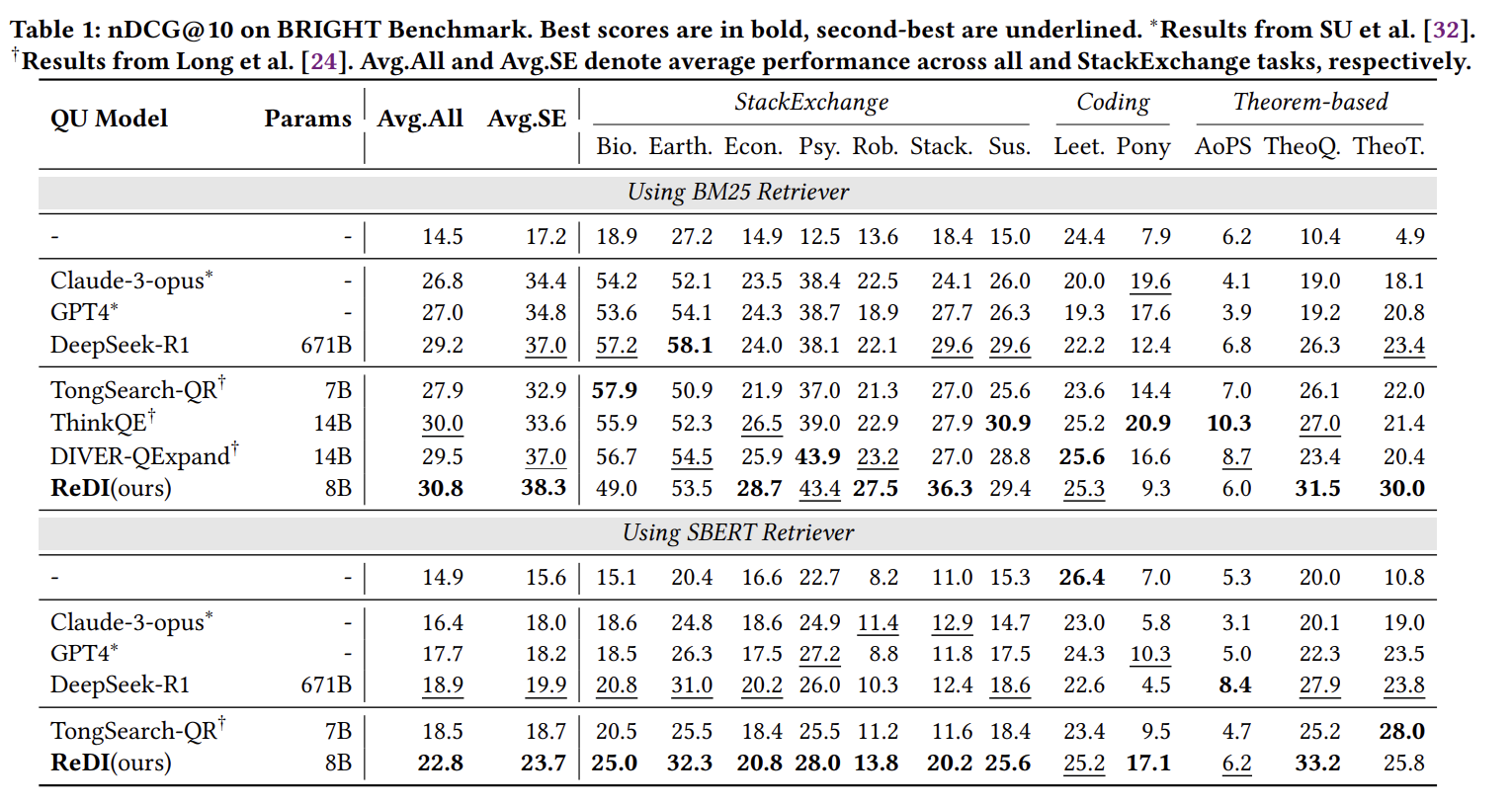 在大模型时代,很多研究者将重点放在检索器和生成器的优化上,而忽视了查询理解。ReDI证明,即使使用简单的BM25,配合好的查询理解也能达到SOTA性能。