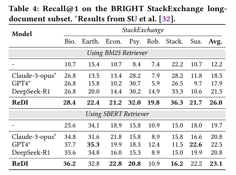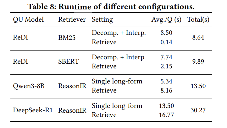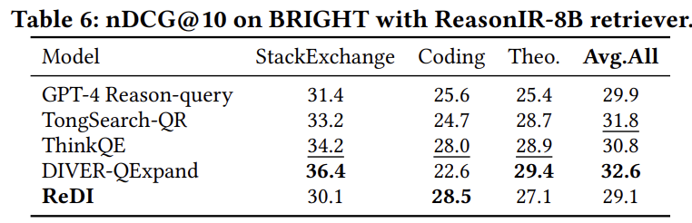 | ReasonIR-8B | 推理能力强 | 成本高,与ReDI不太匹配 | 长格式查询 |