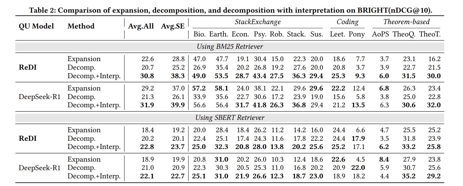 - 理论贡献:证明了对于复杂查询,分解仍然是有效的方法,但需要配合解释来提升检索性能