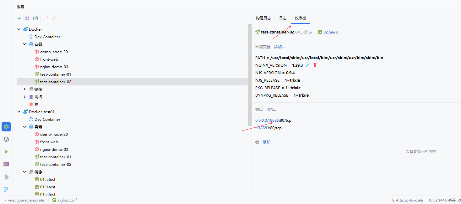 说明:点击运行后,项目会先完成打包,打包完成后执行镜像构建任务,镜像构建成功后自动创建容器。