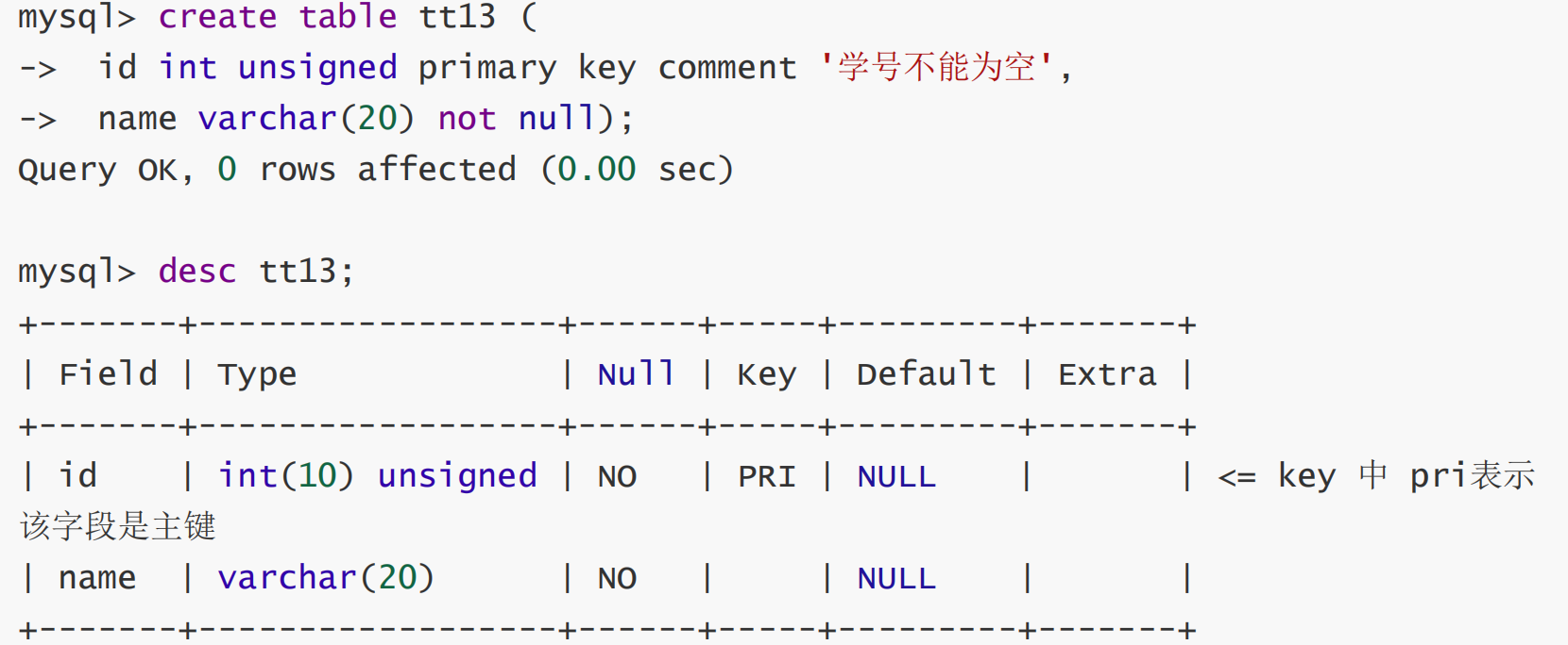 有了主键,表中就不会出现相同的两行数据。