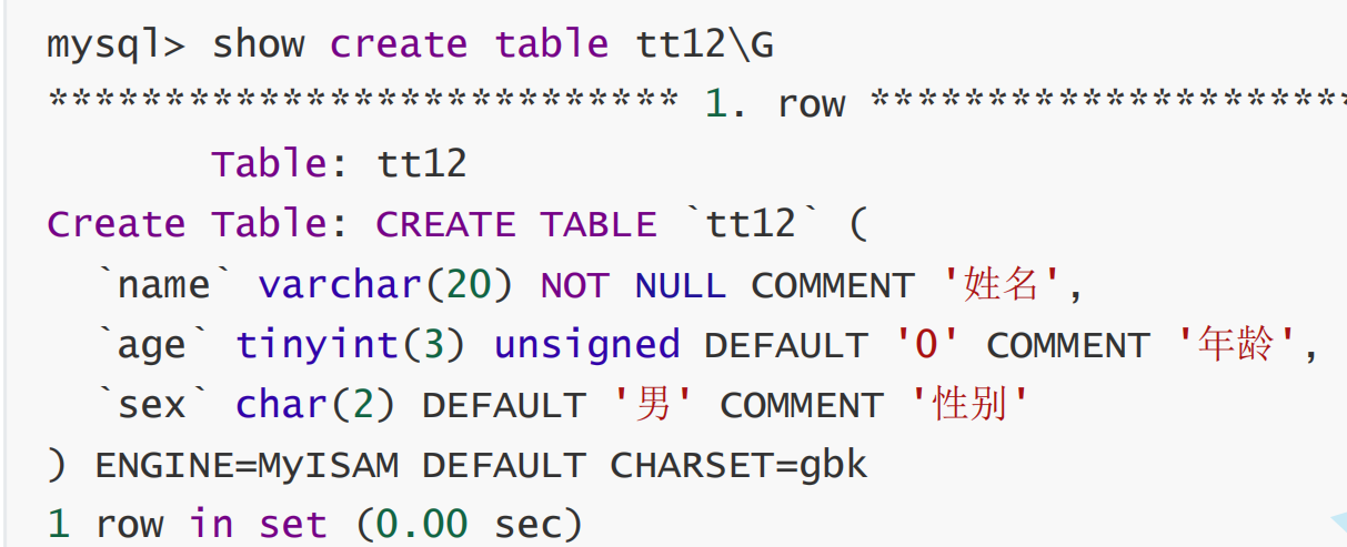 show create table 表名\G 可以看到列描述