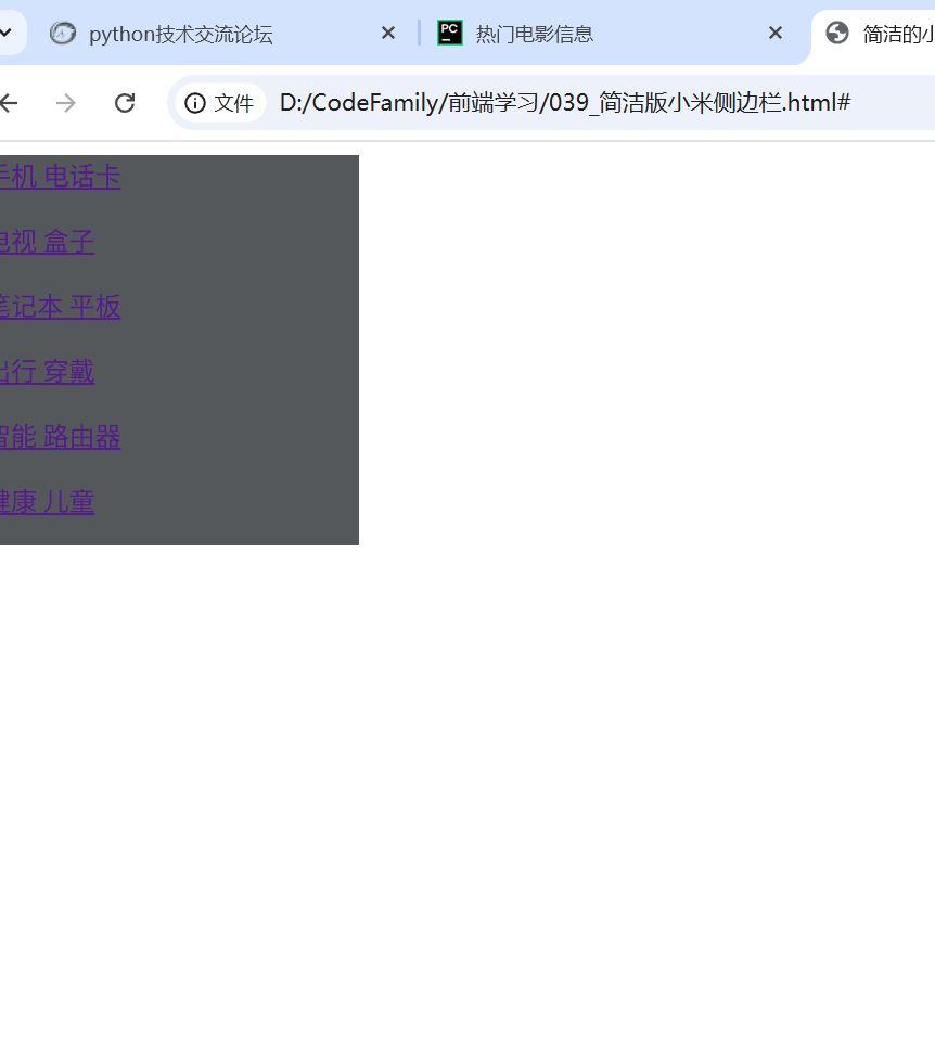 <html lang="en"><head><meta charset="UTF-8"><meta name="viewport" content="width=device-width, initial-scale=1.0"><title>简洁的小米侧边栏</title><style>a {display: block;}</style>